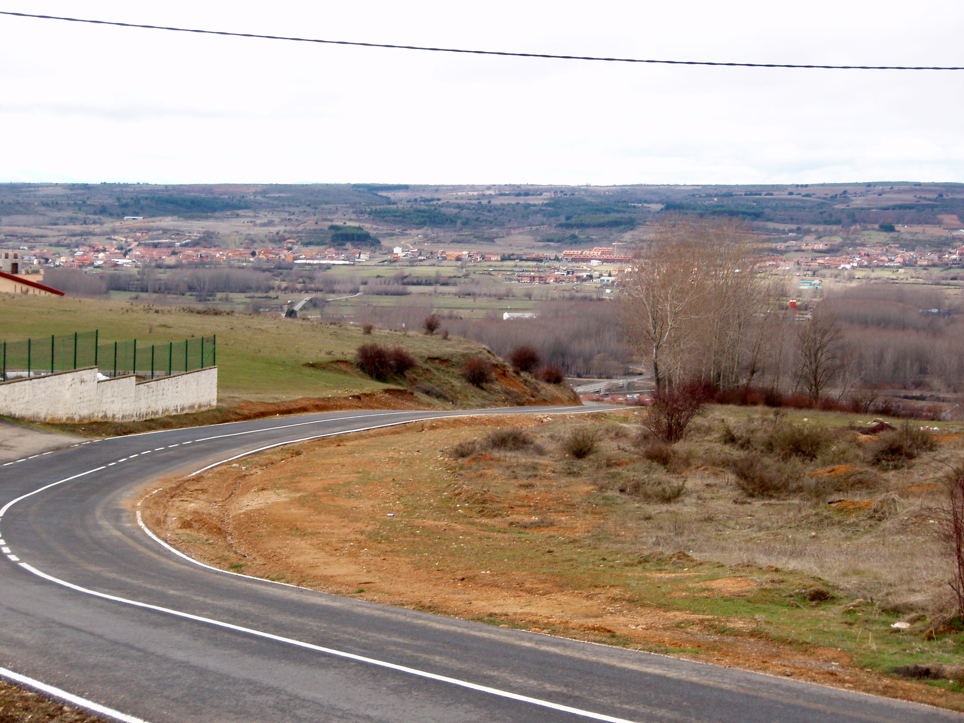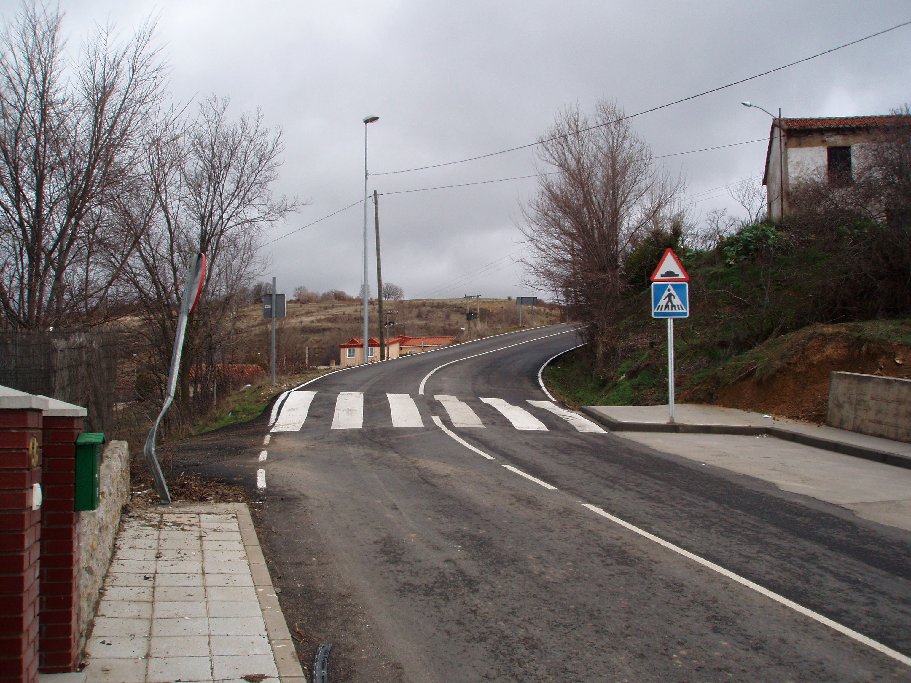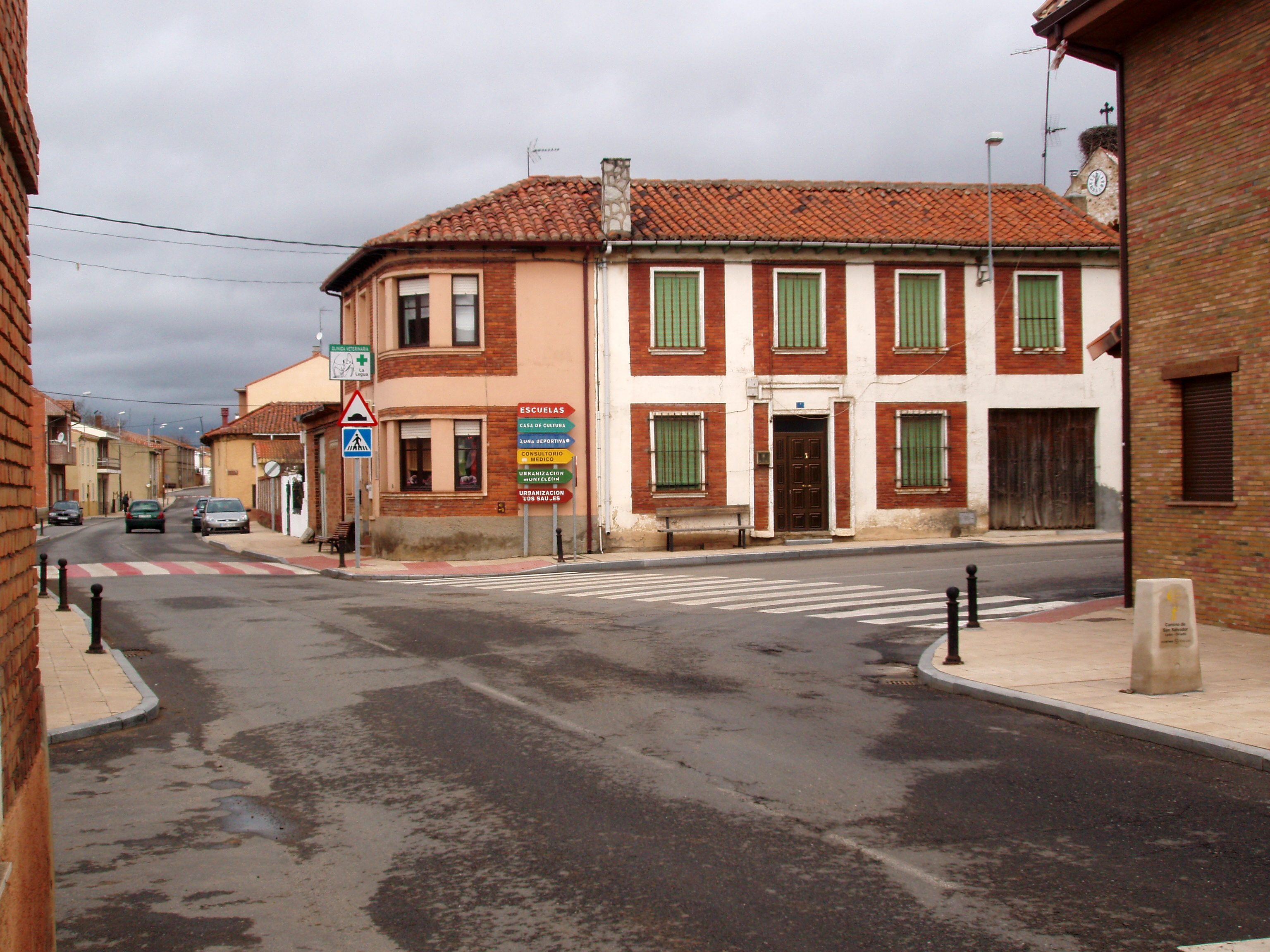 El cruce, en Carbajal de la Legua, que nos conduce al inicio de la subida.