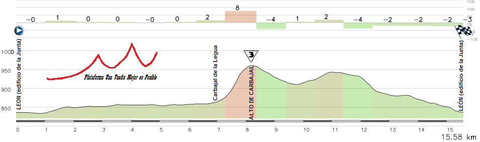 El circuito que proponemos para este «muro» tiene situada la meta en la explanada del edificio de la Junta, donde existe un espacio amplísimo y que además se sitúa al lado del Parador de San Marcos, el Auditorio Ciudad de León o el Musac. Un lugar de mucho mayor atractivo que el clásico final que se realiza al lado del Pabellón de los Deportes. Estos serían el perfil y el plano de dicho circuito: