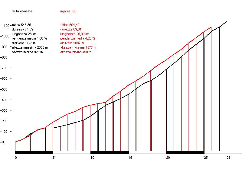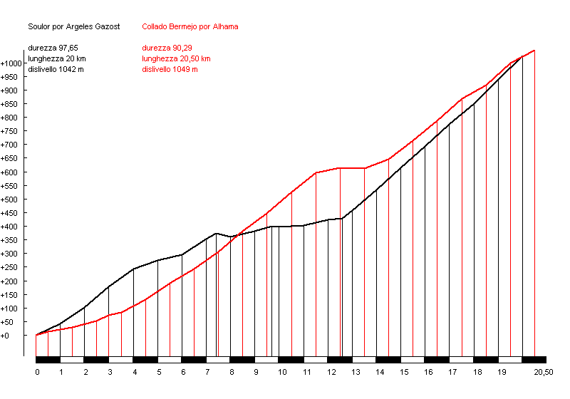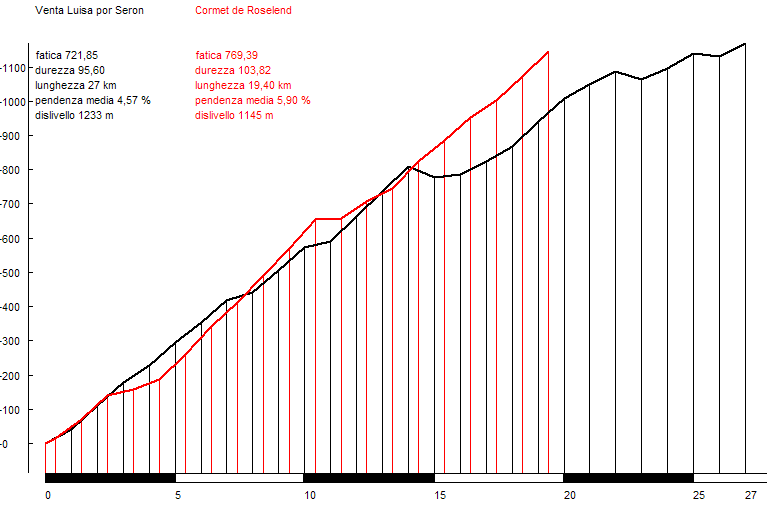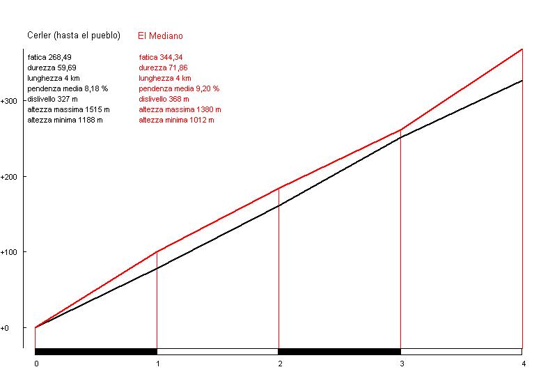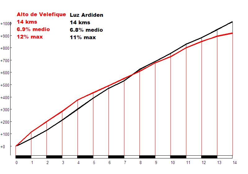 Como se puede ver las similitudes con Luz Ardiden son evidentes, mientras que Vesubio solo se acerca a Velefique cuando éste último suaviza en su tramo final.