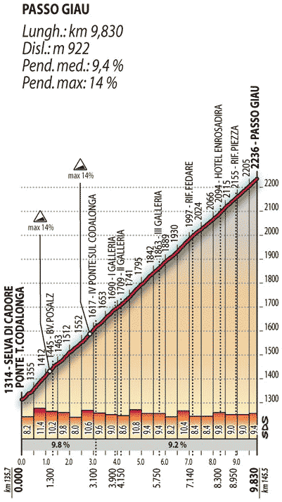 18%. Se continúa con el Cordal por la vertiente contraria a la habitual, menos exigente y solo de 2ª. Pero tras su rápido descenso hasta Pola de Lena, se comienza sin dilación a subir el puerto aquí presentado, La Cobertoria, todo un Especial. Su descenso nos deja a los pies de otro monstruo asturiano desconocido, la Ermita de Alba. Se puede ver como su pendiente es incluso mayor que la de Alpe di Pampeago, tremendo final habitual del Giro. Sus 7km al 10,8% se convertirán un calvario para todos los corredores después de una jornada tan dura, y las últimas rampas superiores al 20% serán agónicas.