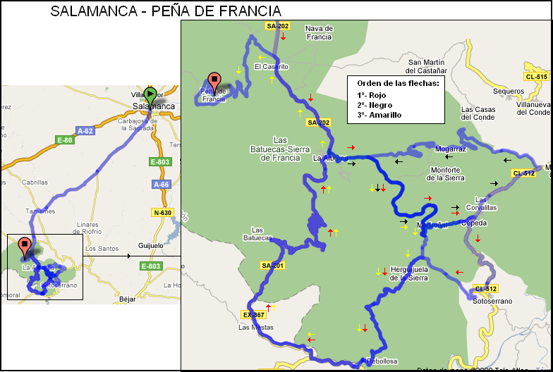Con un final similar, la etapa podría salir desde Ciudad Rodrigo atravesando la Sª de Francia. En cualquier caso, siempre se podría sustituir El Cerro por Lagunilla, haciendo el bucle en sentido contrario, o suprimir ese circuito bajado directamente de Puerto de Béjar a Aldeanuela del Camino.