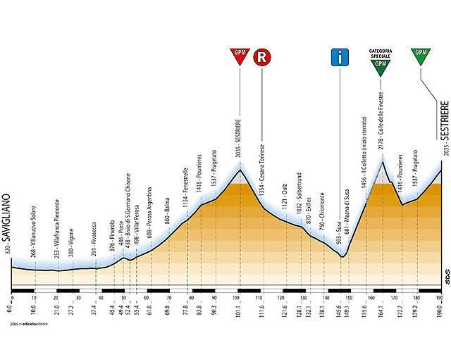 Perfil de la 19ª etapa del Giro 2005, con un coloso de paso como