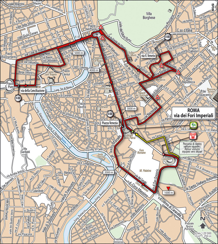 En cualquier caso, la belleza de la ciudad de Roma proporcionará un marco muy atractivo para la disputa de esta última etapa, con la meta situada justo al lado del Coliseo.