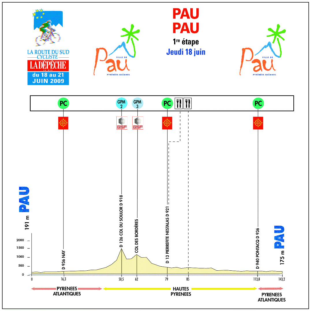 1ª ETAPA (Jueves 18): PAU – PAU (143,2 KM). Rutómetro