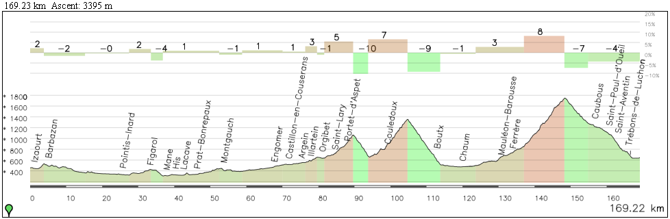 3ª ETAPA (Sábado 19): IZAOURT – BAGNERES DE LUCHON (182,5 KM). Rutómetro