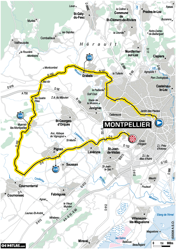 4ª ETAPA (Martes 7 Julio): MONTPELLIER – MONTPELLIER (C.R.E.) (39 km). Rutómetro / Últimos 5 km