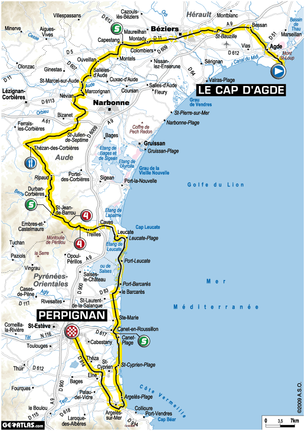 5ª ETAPA (Miércoles 8 Julio): LE CAP D´AGDE – PERPIGNAN (196,5 km). Rutómetro / Últimos 5 km
