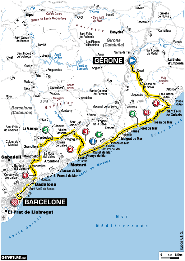 6ª ETAPA (Jueves 9 Julio): GERONE (Esp.)- BARCELONE (Esp.) (181,5 km). Rutómetro / Últimos 5 km