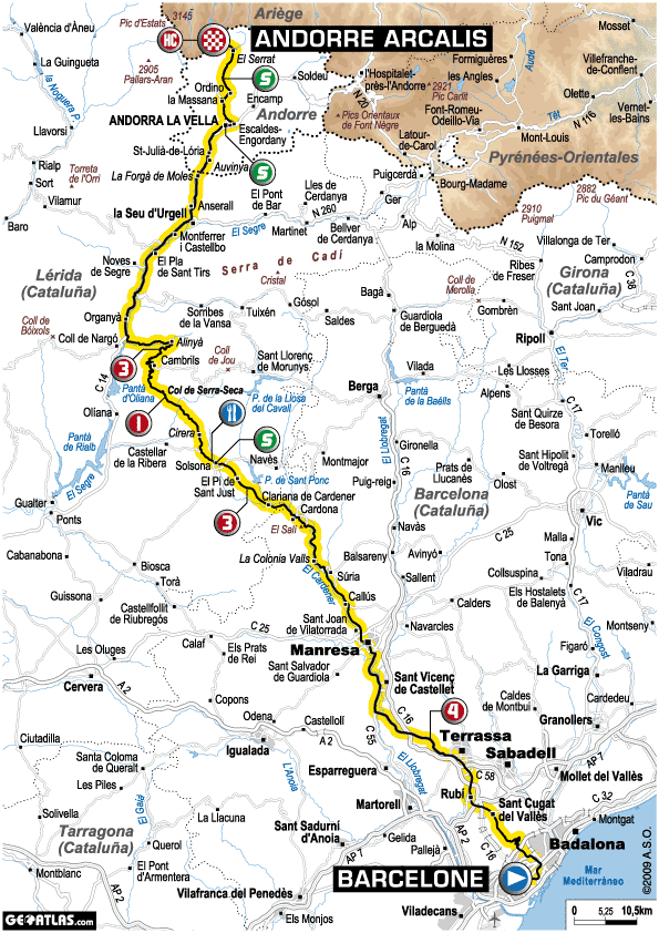 Como primera etapa de montaña no está mal: trazado rompepiernas, buen kilometraje y una ascensión final exigente. Pero resulta cansino el uso que los organizadores hacen de Andorra, como si solo existiera Arcalís. Andorra tiene muchas otras posibilidades diferentes y en esta etapa se podía haber explorado alguna de ellas. Y antes de entrar en el Principado, también había opciones de reducir el llano, yendo por Port del Compte, Col de Port y Banyeres-Galliner.