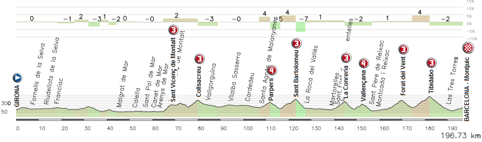 Esta etapa, por transcurrir por España, es la que mejor «conocemos» , y quizá por eso nos de más rabia que se desaproveche el terreno, pues se podría hacer una muy interesante etapa de media montaña para la primera semana de carrera, donde no solo sería atractivo el final, como en la etapa del Tour, sino toda la etapa por la sucesión de pequeños puertos que culminan con la subida al Tibidabo muy cerca de la meta.