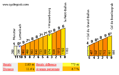 Esta ya es una gran etapa de por sí, aprovechando bien una zona como los Vosgos. La opción mas rápida de mejora es cambiar el Col de Firstplan por el Col de Boenlesgrab, este último algo más duro y rompedor, siendo ambas carreteras paralelas comparten además la bajada casi al completo. Pero la inclusión más significativa seria la del Petit Ballon, un puerto de entidad con 10km al 7,8% cuya bajada nos deja a los pies de otro buen puerto como Platzerwasel. De esta forma se consigue que los 4 puertos de la jornada se sucedan sin descanso y su dureza es suficiente como para que merezca la pena atacar.