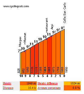 Esta es la otra etapa que pide a gritos un endurecimiento. Ya solo con el Colle San Carlo ganaría muchísimo, pero podría ser perfectamente la más exigente de todas si, para reducir el llano, incluimos ademas Peroulaz y Combes, muy duro especialmente el primero (2/3 de la subida a Pila, que se vio en el Giro hace casi 20 años). El Colle San Carlo también se estrenó en la ronda italiana, en el año 2006 en una etapa donde, pese a ser el único puerto, su dureza provocó importantes diferencias entre los favoritos que nos brindaron un bonito espectáculo.