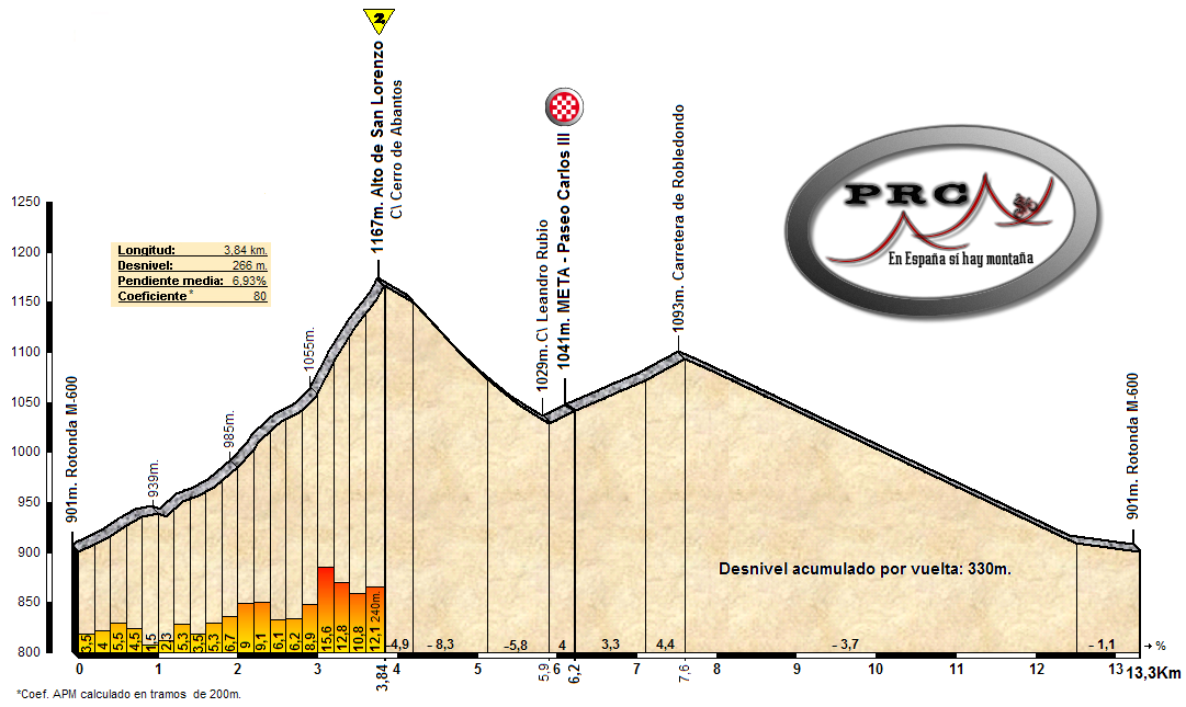 Se trata de una subida espectacular por las calles del pueblo de San Lorenzo del Escorial, que incluye bonitas zonas empedradas y brutales rampas sostenidas por encima del 15%, especialmente en la Calle Cañada Nueva. En parte, estas calles ya han sido usadas en La Vuelta como inicio de la subida a Abantos. Dejamos aquí una colección de fotografías de la subida y la bajada.