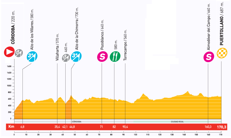 Después del duro bloque montañoso en Andalucía, la carrera llega a Castilla a la Mancha con una etapa a priori tranquila aunque «rompepiernas», especialmente los 65 km iniciales, siendo una jornada propicia para el sprint pero con terreno inicial para que los «aventureros» también tengan su oportunidad.