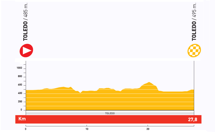 20ª ETAPA (Sábado 19 Septiembre): TOLEDO – TOLEDO (C.R.I.) ( 27,8 km). Rutómetro y horarios