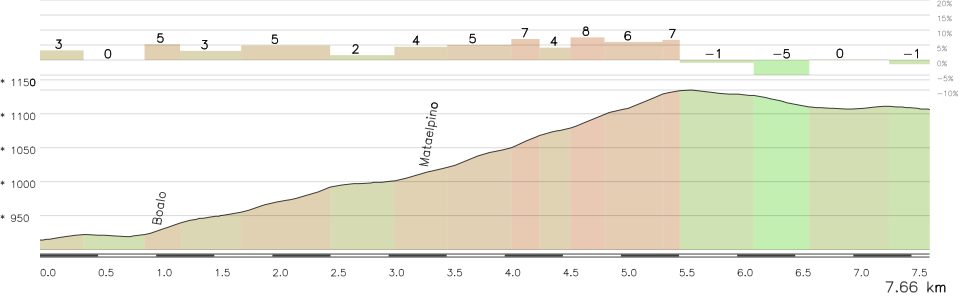 El último puerto de la jornada es El Boquerón. No tiene rampas duras así que la carrera debería ir ya rota para hacer daño. Click para ver una descripción detallada.