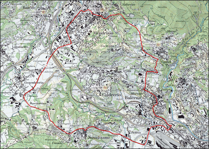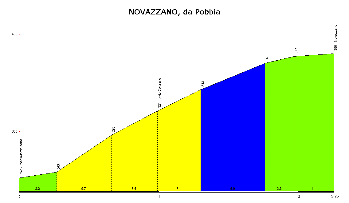 - La Torraccia/Novazzano (km 11,2): 376 m – 1,9 km – 125 m – 6,5 %