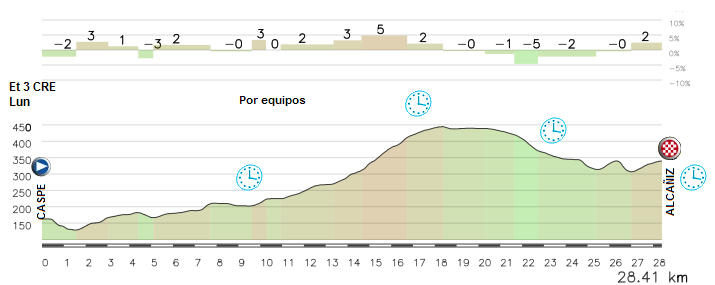 Lun – Etapa 3, Caspe – Alcañiz, contrarreloj por equipos de 28.41 kilómetros.