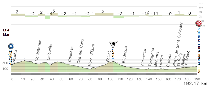 Mar – Etapa 4, Alcañiz – Villafranca del Penedés, de 192 kilómetros.