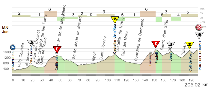 Jue – Etapa 6, Banyoles – Port del Compte, de 205 kilómetros.
