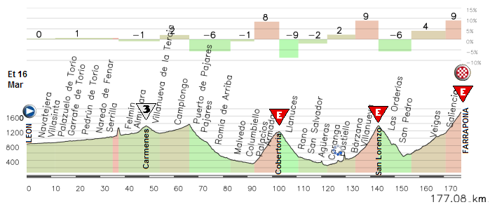 Mar – Etapa 16, León – La Farrapona, de 177 kilómetros.