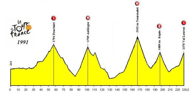 Año 1988, con Aspet, Mente, Peyresourde, Aspin, Tourmalet (desde km 5,7) y Luz Ardiden