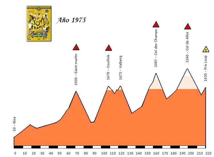 Año 1975, con Saint Martin, Couillole, Valberg (últimos 6,4 km), Champs, Allos y Pra Loup.