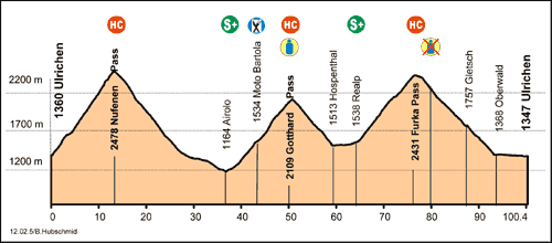 Año 2007, con Furkapass (últimos 20km), Sustenpass y Grimselpass