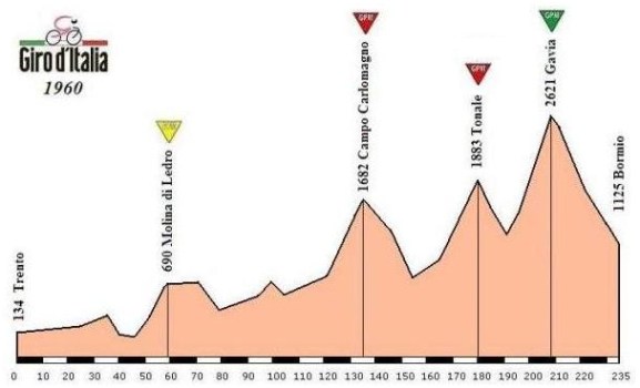 Año 1962 y 1963, con Duran, Forcella Staulanza, Sta Lucia, Forcella Aurine + Cereda, Rolle, Valles (últimos 7km) y San Pellegrino (desde km.12,7)