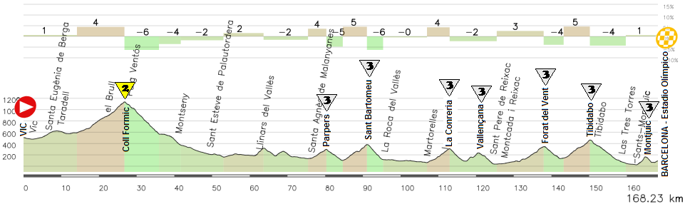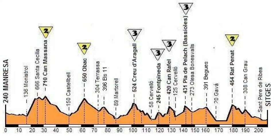 - Opción 1: etapa dando protagonismo a Collfred, y al día siguiente salida desde Vic hasta Barcelona en una etapa llena de tachuelas y con trampas al final.