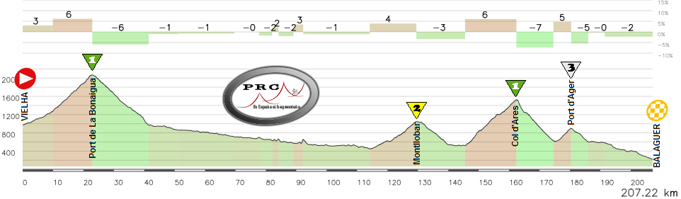 Para hacer una etapa interesante y poder realizar el traslado desde Lleida, lo idóneo es colocar el final de etapa en Balaguer, a unos 25km de la capital de provincia. Las etapas contarían en su parte final con el Col d’Ares por la vertiente de Alsamora, un buen puerto de 1ª asfaltado en 2007. Su bajada enlaza con el Port d’Ager, un 3ª, que se coronaría a 27km de meta, todos de bajada irregular y con algún repecho. Como última oportunidad montañosa, obligaría a los ataques lejanos.