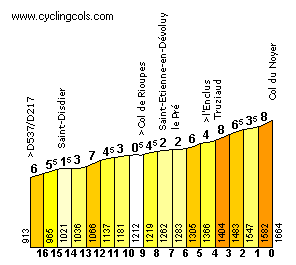 Etapa alternativa Chambery-Gap, con Laffrey (1), Morte (1), Parquetout (1), Noyer (1-2) y Bayard (3). *La etapa tendría 203 km ya que faltan los 10 km iniciales.