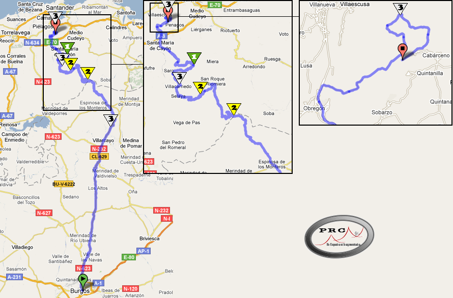 El comienzo de la etapa se podría colocar en Burgos, en alguna localidad cántabra o en Cangas de Onís, por lo que es factible incluir este final casi desde cualquier lugar.