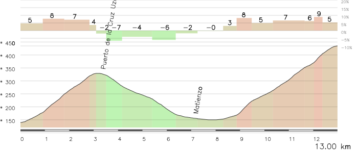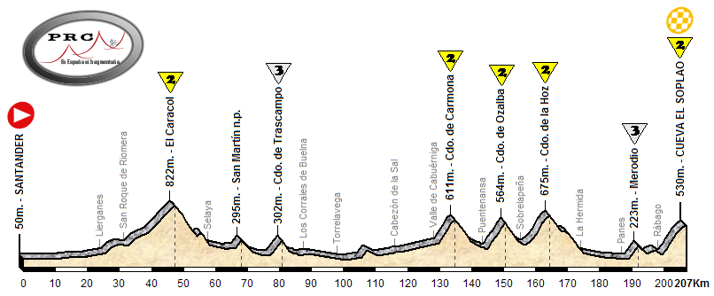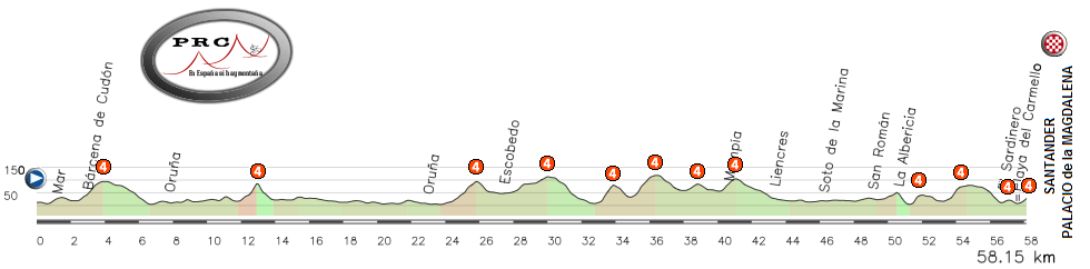Se transitan 79 Km. donde, sin pasar por ningún puerto de primera, se acumulan 2000m. de desnivel pues se suben 3 puertos de 2ª y 3 de 3ª, además de algún que otro repecho. En especial son de gran dureza el Cdo. De Quintanilla de Toranzo, con 2km centrales rondando el 12% y máximas del 20%, y la subida a Capía desde Puente Viesgo, con dos Km. centrales al 10,5% que esconden algo más de un kilómetro con rampas sostenidas cercanas al 20% y puntas del 23%. Su cima se encuentra a menos de 15 Km. de meta y todavía quedaría superar La Montaña, y es que esto es lo más importante de este final: apenas hay distancia entre puertos con lo que el control se antoja muy difícil.