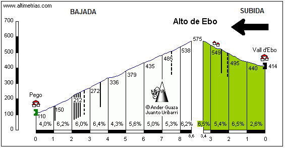 Subida y bajada al Alto de Ebo. Perfil de APM, click para la descripción.