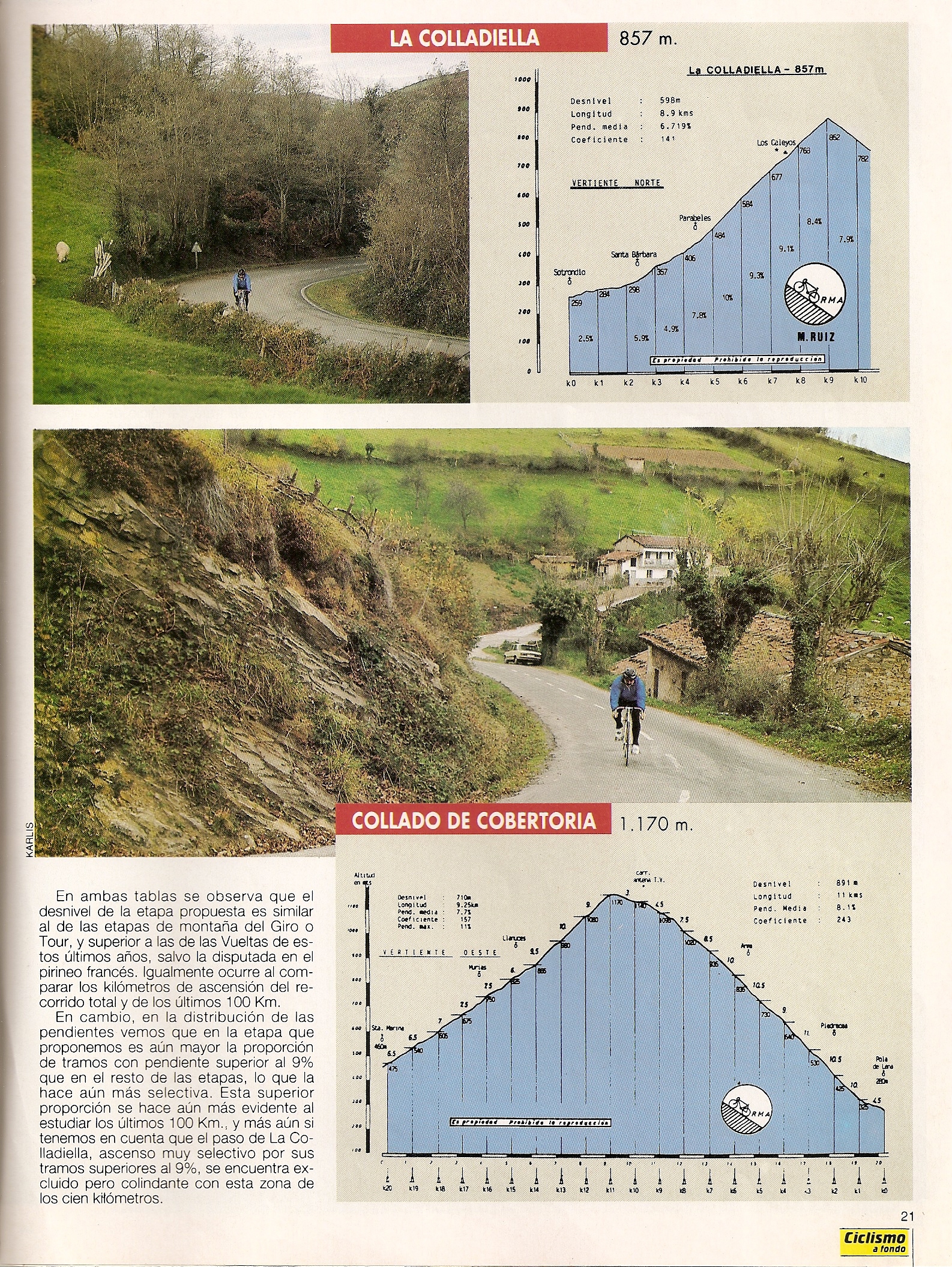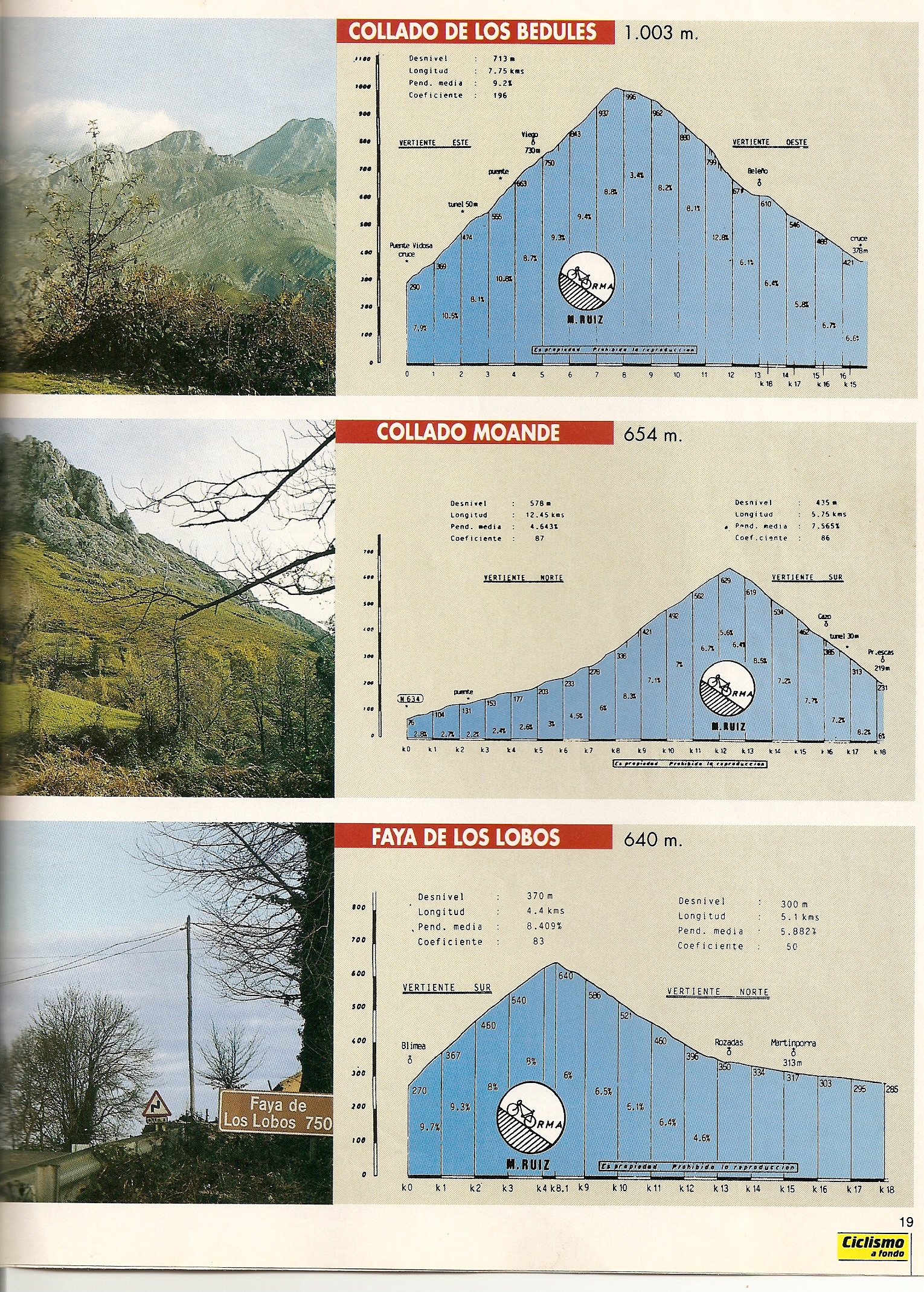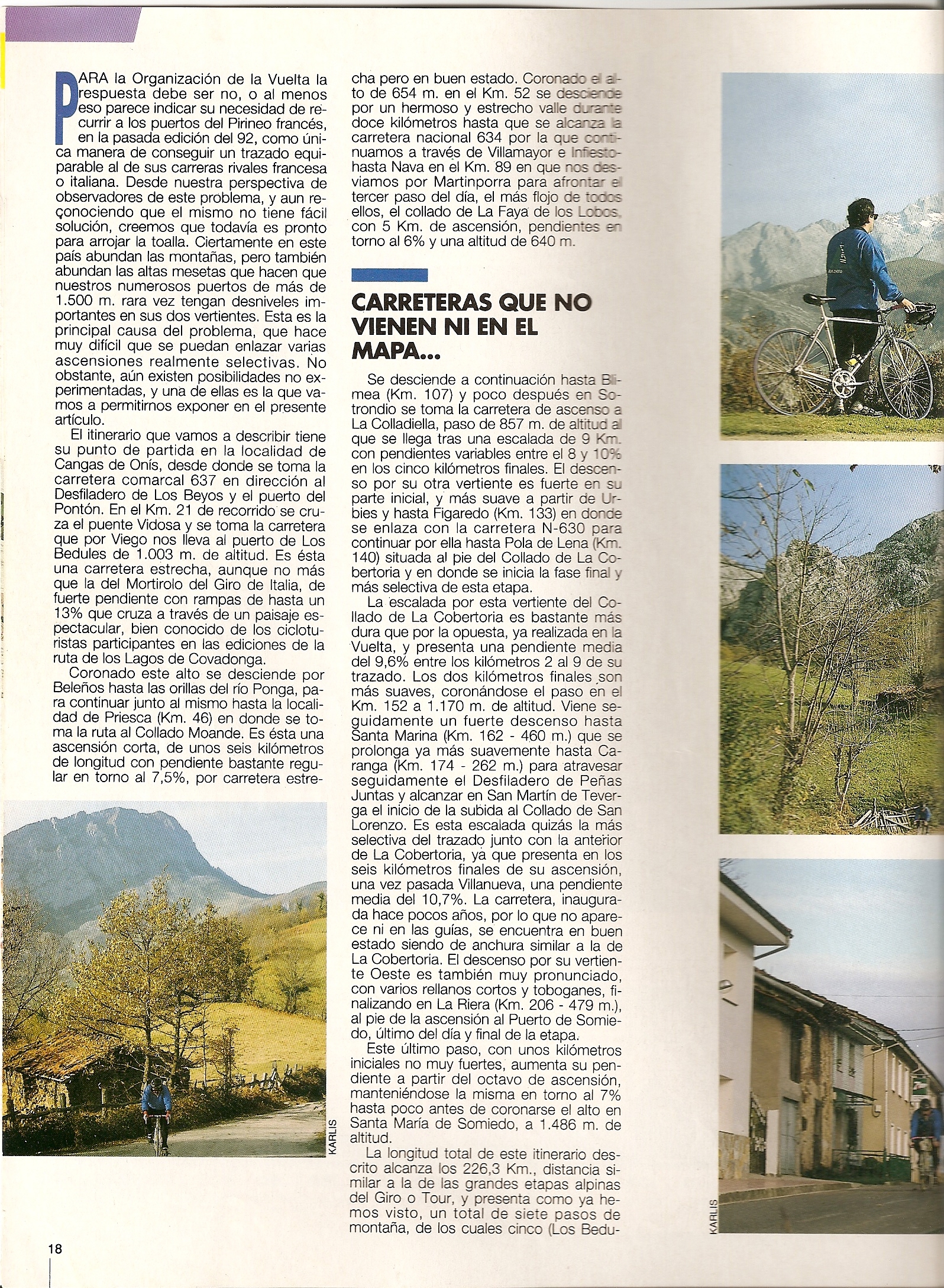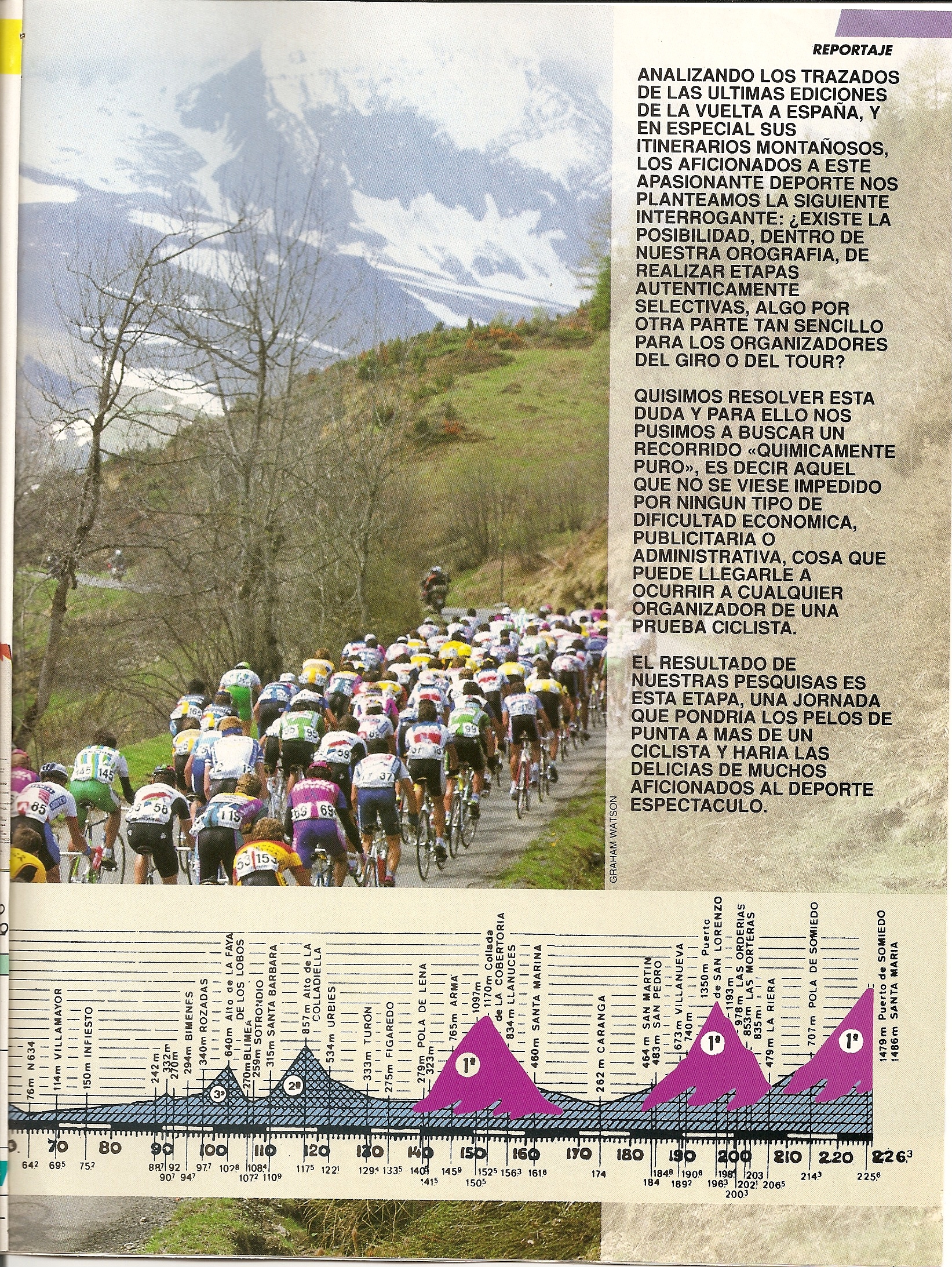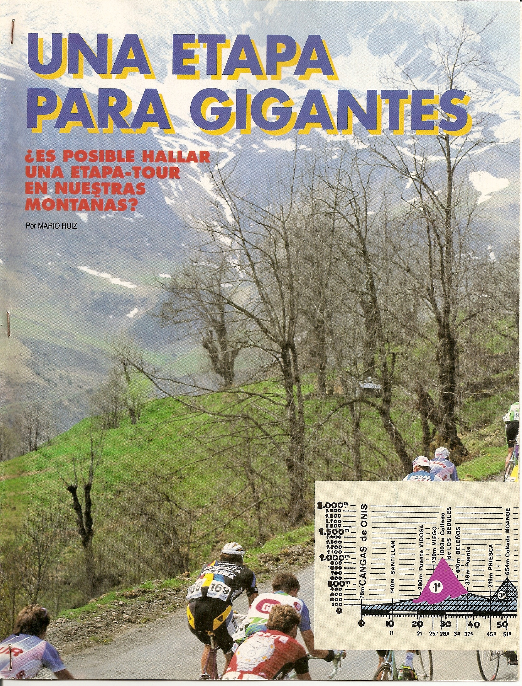 Pero, ¿es posible hacer una verdadera etapa reina de ese calibre en España?. Desde la Plataforma nos esforzamos en demostrar que sí, en intentar que todo el mundo lo sepa y en que Unipublic lo lleve a cabo, pero ni mucho menos somos los primeros. Esta misma pregunta ya la respondió en 1993 Mario Ruiz en la revista Ciclismo a Fondo, proponiendo una espectacular etapa asturiana desde Cangas de Onís al Puerto de Somiedo, como también hizo con el Angliru o los grandes puertos de La Cabrera y el Bierzo.
