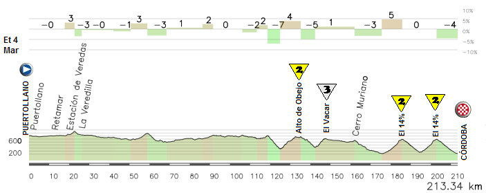 Etapa 4, Puertollano – Córdoba, de 214.34 kilómetros.