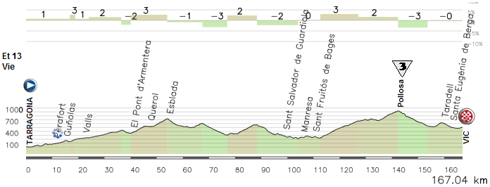 Etapa 13, Tarragona – Vic, de 167.04 kilómetros.