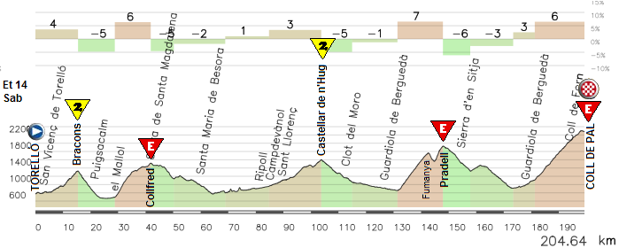 Etapa 14, Torelló – Coll de Pal, de 204.64 kilómetros.