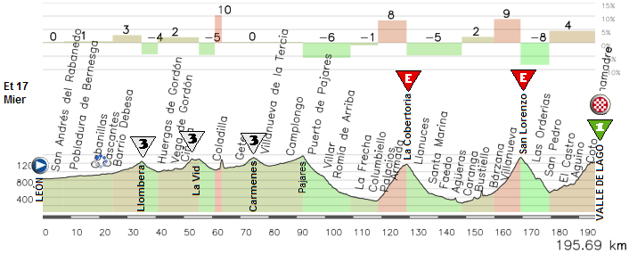 Etapa 17, León – Valle del Lago, de 195.69 kilómetros.