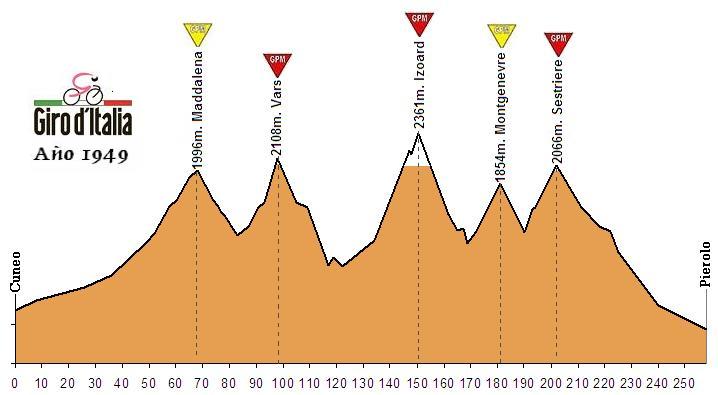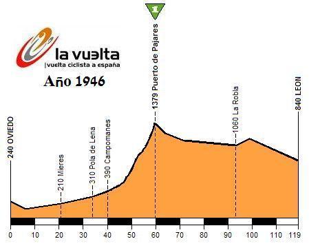 Por lo tanto poco se puede rescatar de aquella época. Los recorridos no eran especialmente llamativos. Mientras que en el Tour, por ejemplo, ya llevaban décadas viendo el encadenado Aubisque – Tourmalet – Aspin – Peyresourde o el Allos – Vars – Izoard o subiendo el Galibier por cualquiera de sus dos vertientes (en el 47 se vió un encadenado Croix de Fer – Telegraphe – Galibier con final en Briançon), incluso se vio una contrarreloj subiendo el Iseran por su vertiente de Bonneval (la dura) y bajando más de 45km hasta Bourg Saint Maurice, y en el Giro durante los 20 años del 35 al 54 ya había cronoescaladas al Terminillo o encadenados tan duros como Falzarego – Pordoi – Sella (con final en Ortisei) o Maddalena – Vars – Izoard – Montegenevre – Sestriere, incluso se había subido un coloso como el Stelvio, en España pocos puertos de cierta entidad se subían. No pasábamos de Navacerrada (con meta en Madrid) , o Pajares (con meta en Léon), o El Escudo (con meta en Reinosa) o Urkiola u Orduña (con meta en Vitoria), pero sin apenas encadenarlos con otros puertos en la misma etapa y con sus respectivas cimas lejísimos de las metas correspondientes.