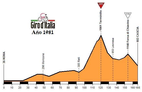 Por contra en el Giro los recorridos habían bajado su nivel considerablemente como ya se comentaba antes. Tampoco es que la dureza no existiese en absoluto. Había poca, pero había. Ocurre que el tipo de etapas de la época no fue la habitual del Giro antes y después. Tal vez lo que resulte más significativo de ese periodo no sea tanto la falta de puertos duros como la tipología de las etapas. Se puede apreciar la tendencia a no encadenar varios puertos de primera, en bastantes ocasiones sólo se ve uno o dos por etapa, y en muchas de ellas vemos que las etapas son bastante llanas y con una subida final en cuya cima estaría la meta, algo que rara vez ocurría antes y que en periodos posteriores se corrigió para volver a la senda habitual.