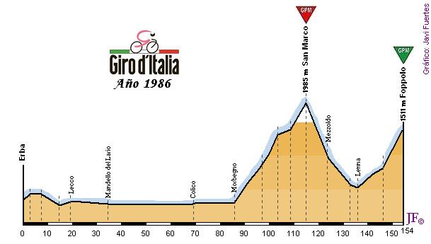 En el Giro no se ven muchos puertacos por edición, pero los que aparecen son auténticos colosos. En el ’86 es el turno de San Marco antes del final en Foppolo.