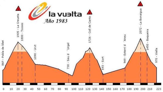 Creueta – Cantó – Bonaigua. Tres buenos puertos en esta etapa de La Vuelta del ’83 con final en Viella, aunque quizás faltaba un poco de continuidad entre las subidas.