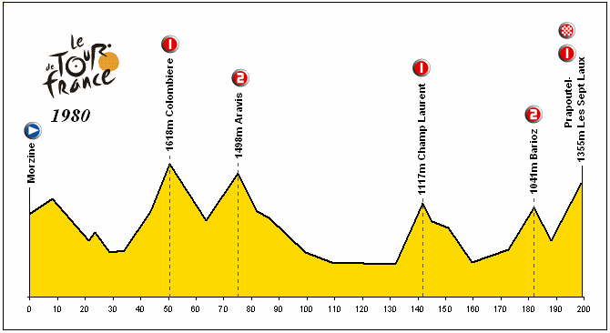 El Tour continúa buscando nuevos finales en alto. En el año ’80 se estrena Prapoutel – Les Sept Laux con un buen desgaste previo.