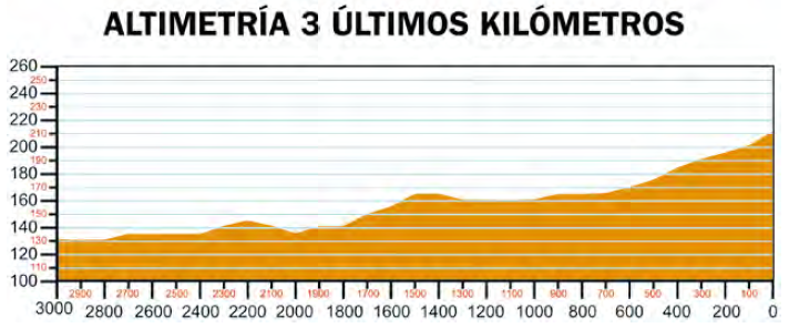 Quizás el hecho de que este final aparezca en la primera etapa y de que, pese a un recorrido que se antoja quebrado, no cuente con mayores dificultades en forma de puertos de entidad –que los hay por la zona-, desdibuja una etapa que podría haber dado mucho más juego en otro momento de la carrera, sobre todo porque no sería de extrañar que sus duras rampas dilucidaran la clasificación general desde el primer día, perdiéndose así la emoción.