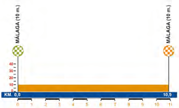 La crono de Málaga podría compensar la pérdida de tiempo que los menos dotados para la escalada sufran el primer día. Serán 11 km. llanos, a tenor del perfil, por las calles de Málaga. Mucho se había hablado de una crono en Gibraltar -incluso se había anunciado por parte de la organización- y lo cierto es que deseamos que en otras ediciones pueda llevarse a cabo: la Roca esconde duras y bellísimas rampas y sería una buena prueba para una futurible etapa de la Vuelta a España.