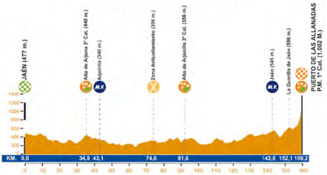 Etapa 1 (Domingo 21): JAÉN – PUERTO DE LAS ALLANADAS (La Guardia de Jaén) 159,2Km – Rutómetro