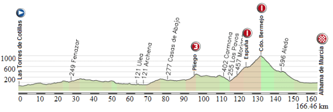 3ª etapa (viernes 5): LAS TORRES DE COTILLAS – ALHAMA DE MURCIA 166,5 Km. – Rutómetro