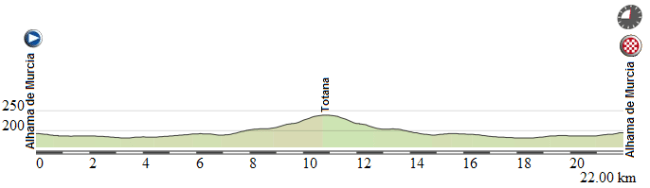 4ª etapa (sábado 6): ALHAMA DE MURCIA – ALHAMA DE MURCIA CRI 22 Km. – Rutómetro